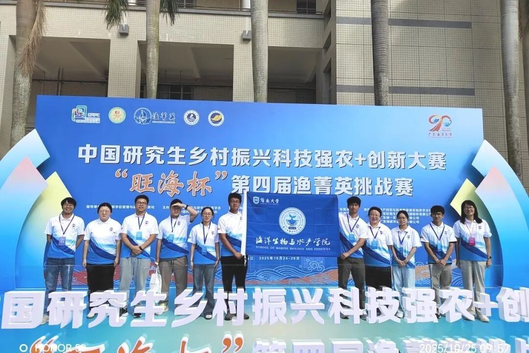 喜报|我院师生在第四届渔菁英挑战赛中斩获佳绩! 2025年10月24日至26日,由中国学位与研究生教育学会、中国科协青少年科技中心主办,广东海洋大学和大连海洋大学承办的中国研究生乡村振兴科技强农+创新大赛——“...