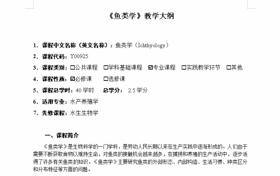 水产养殖学教学大纲截图