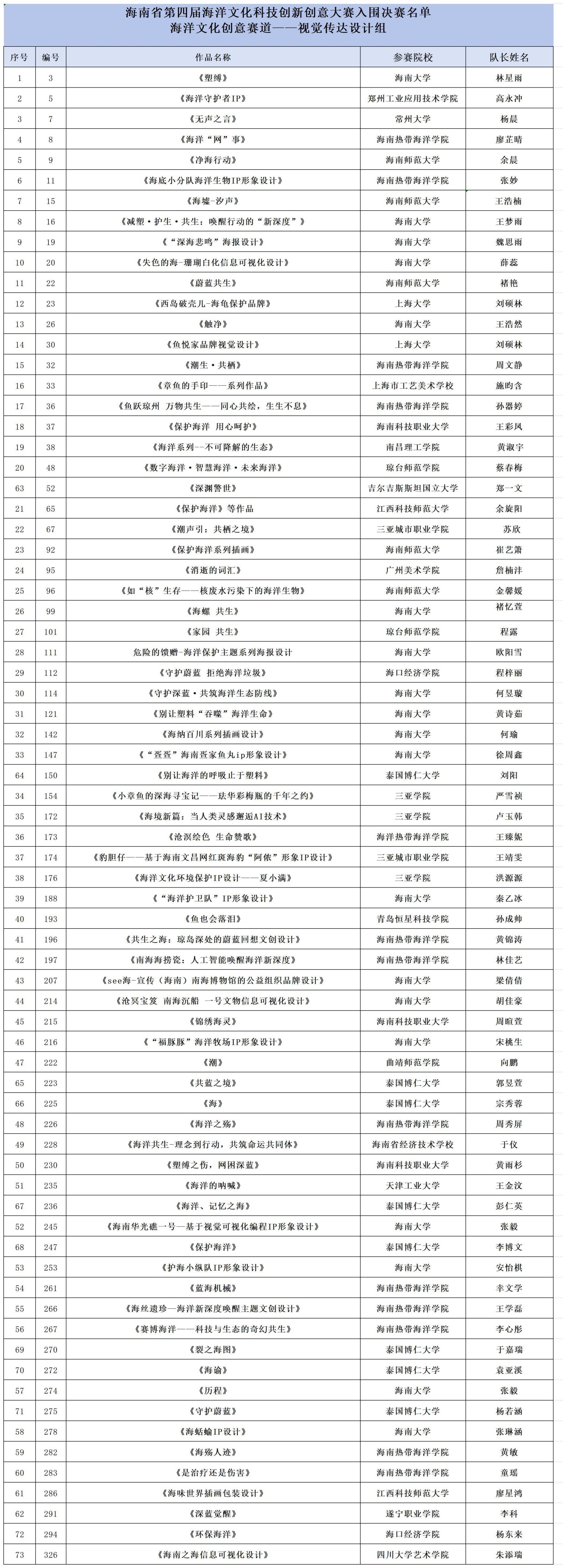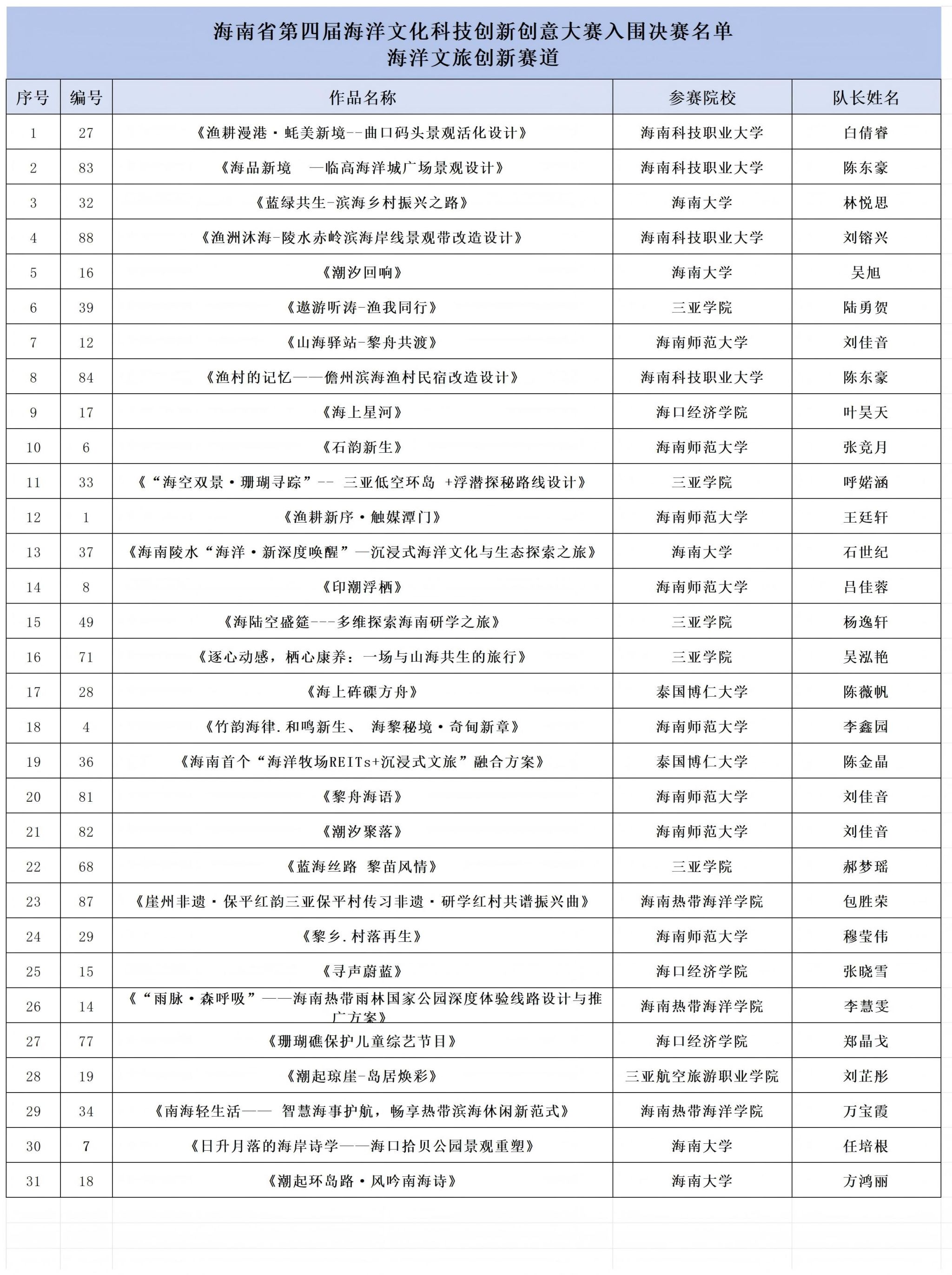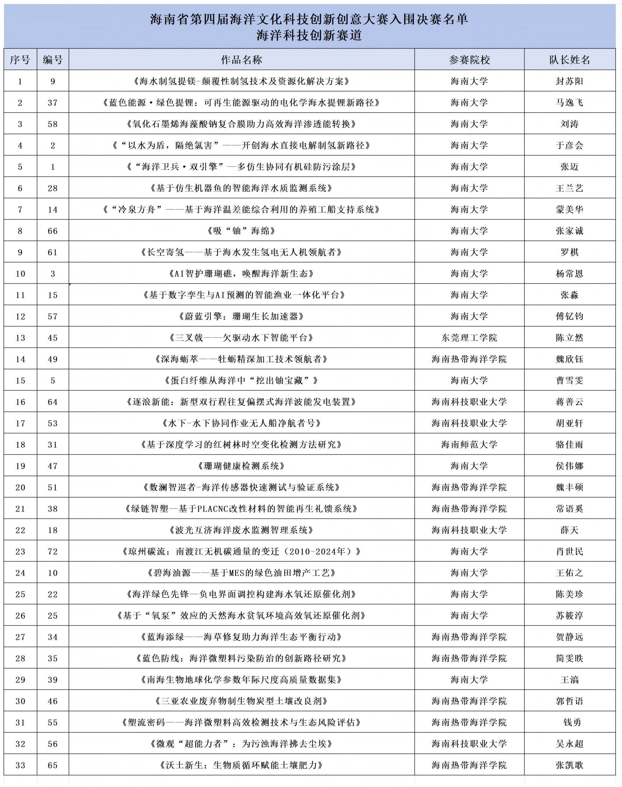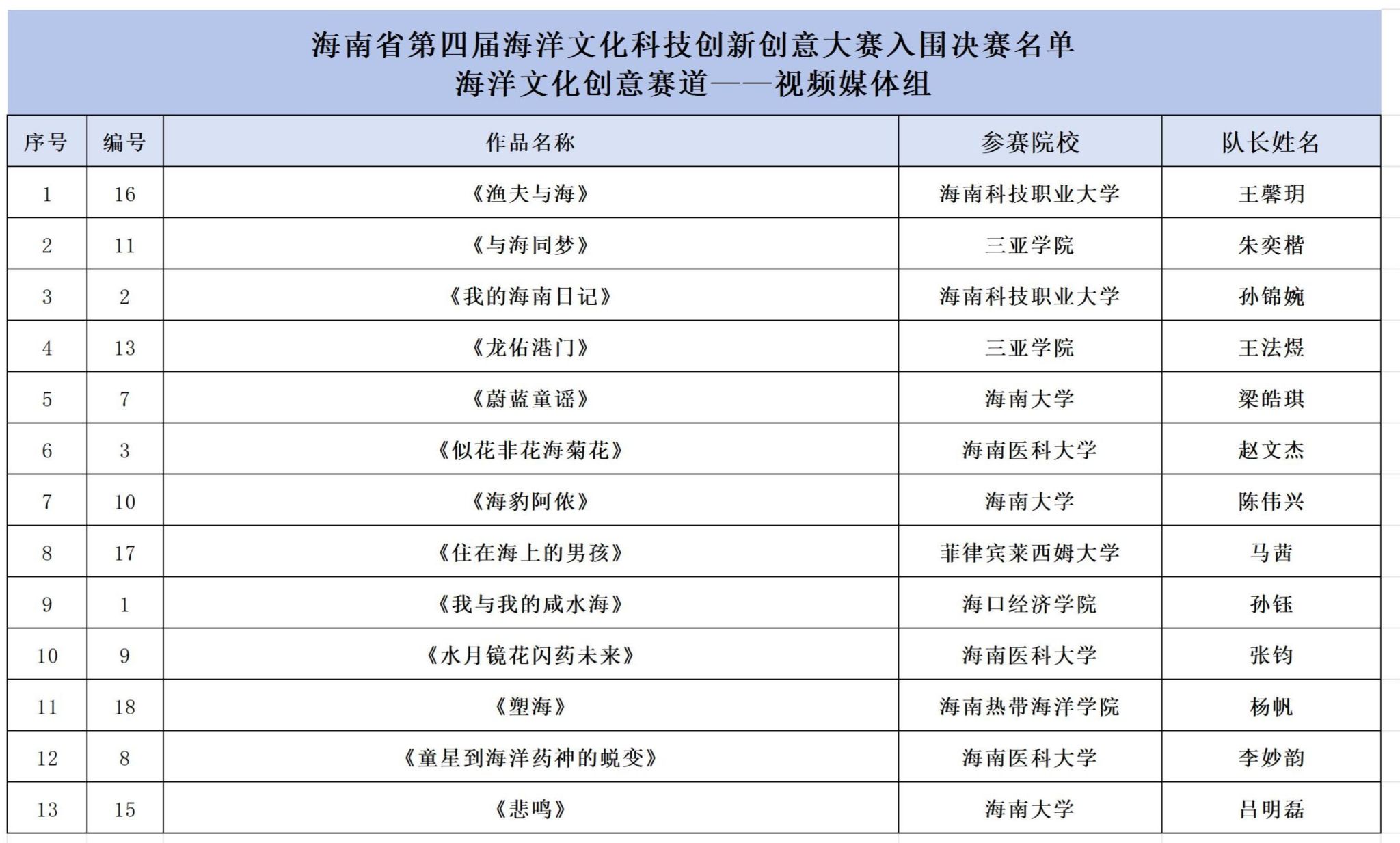 目前,决赛入围作品将在大赛官方公众号及官网进行为期一周的公示。公示期间,若对入围名单有异议,可通过书面形式发送至大赛官网邮箱(hywhkjds@hainanu.edu.cn)向主办方反馈。