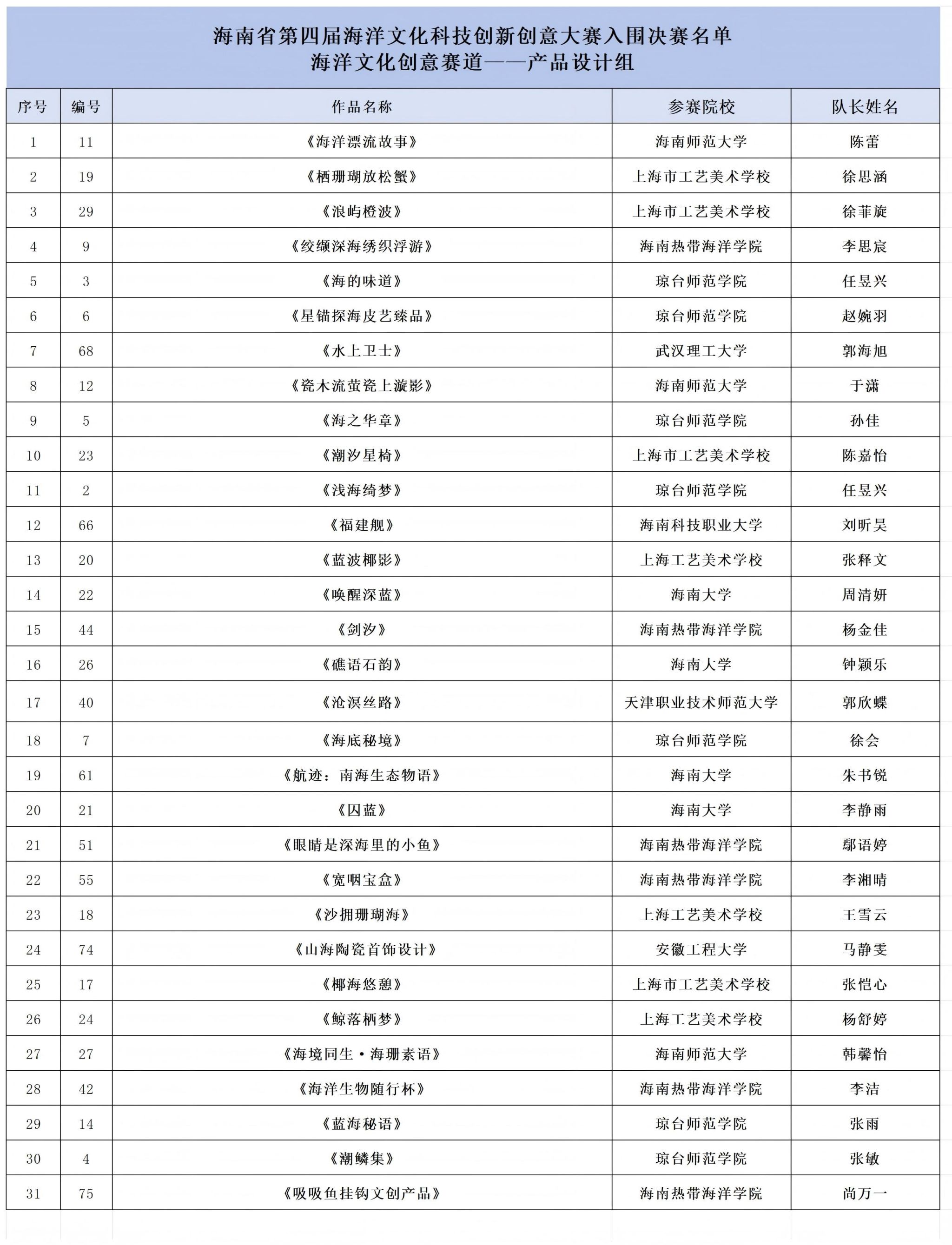 由海南省海洋厅、海南省教育厅、海南省科学技术协会、海南大学联合主办的“海南省第四届海洋文化科技创新创意大赛”初评工作已圆满落幕!