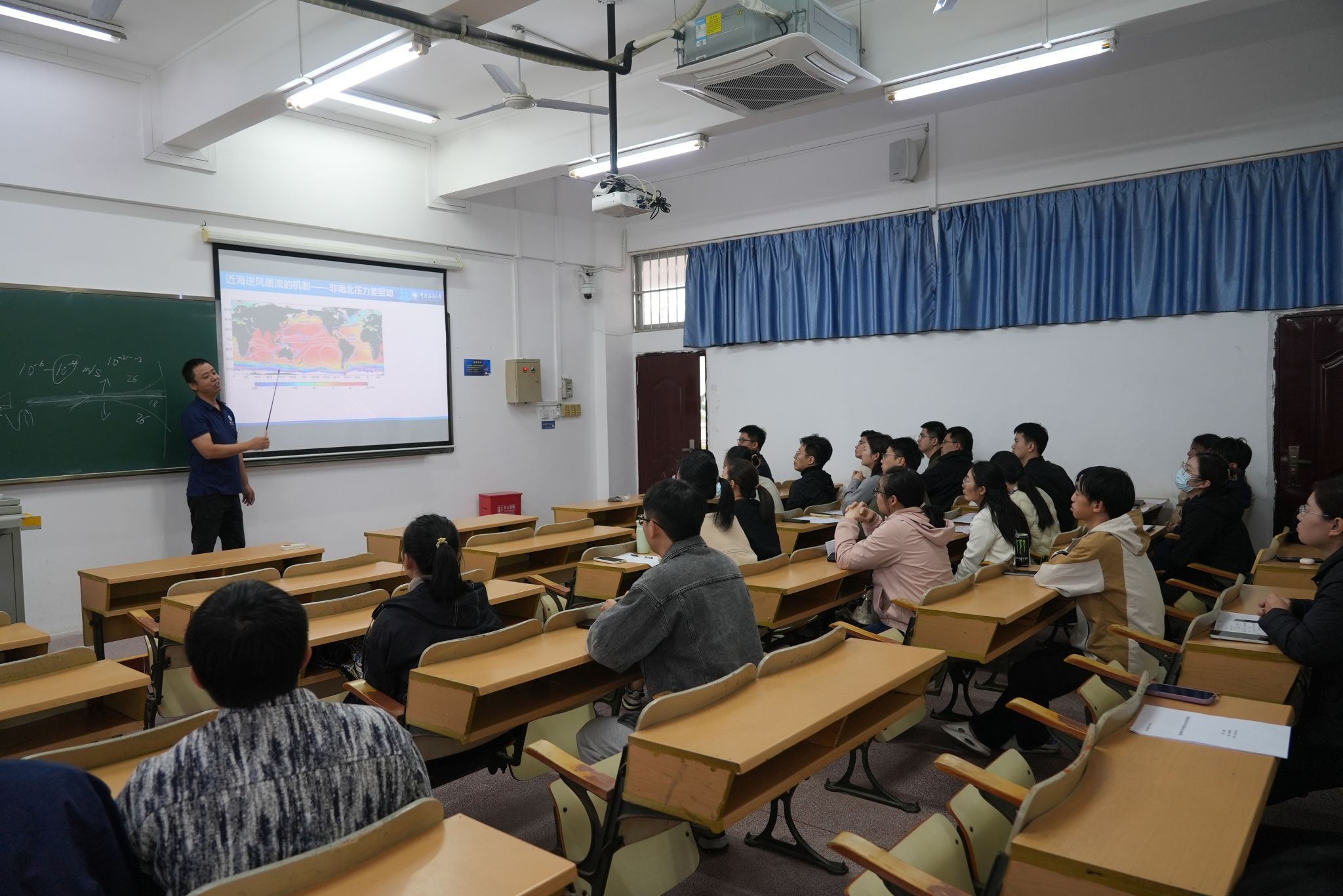 为深入贯彻学院新进青年教师培养管理办法,助力青年教师树立正确教育理念、掌握教学基本技能、快速适应岗位要求,切实提升整体教学质量,2026年1月6日上午,海洋科学学院组织21名新进青年教师,于海甸校区2教302教室观摩中国海洋大学林霄沛教授讲授的《近海区域海洋学》课程。